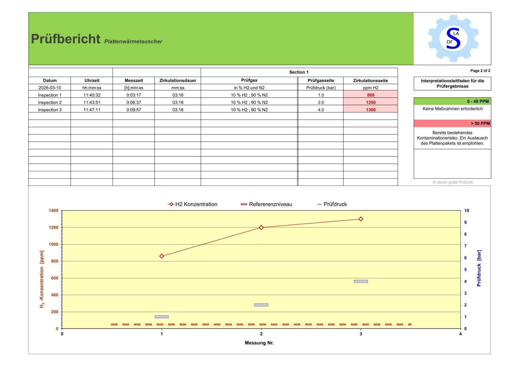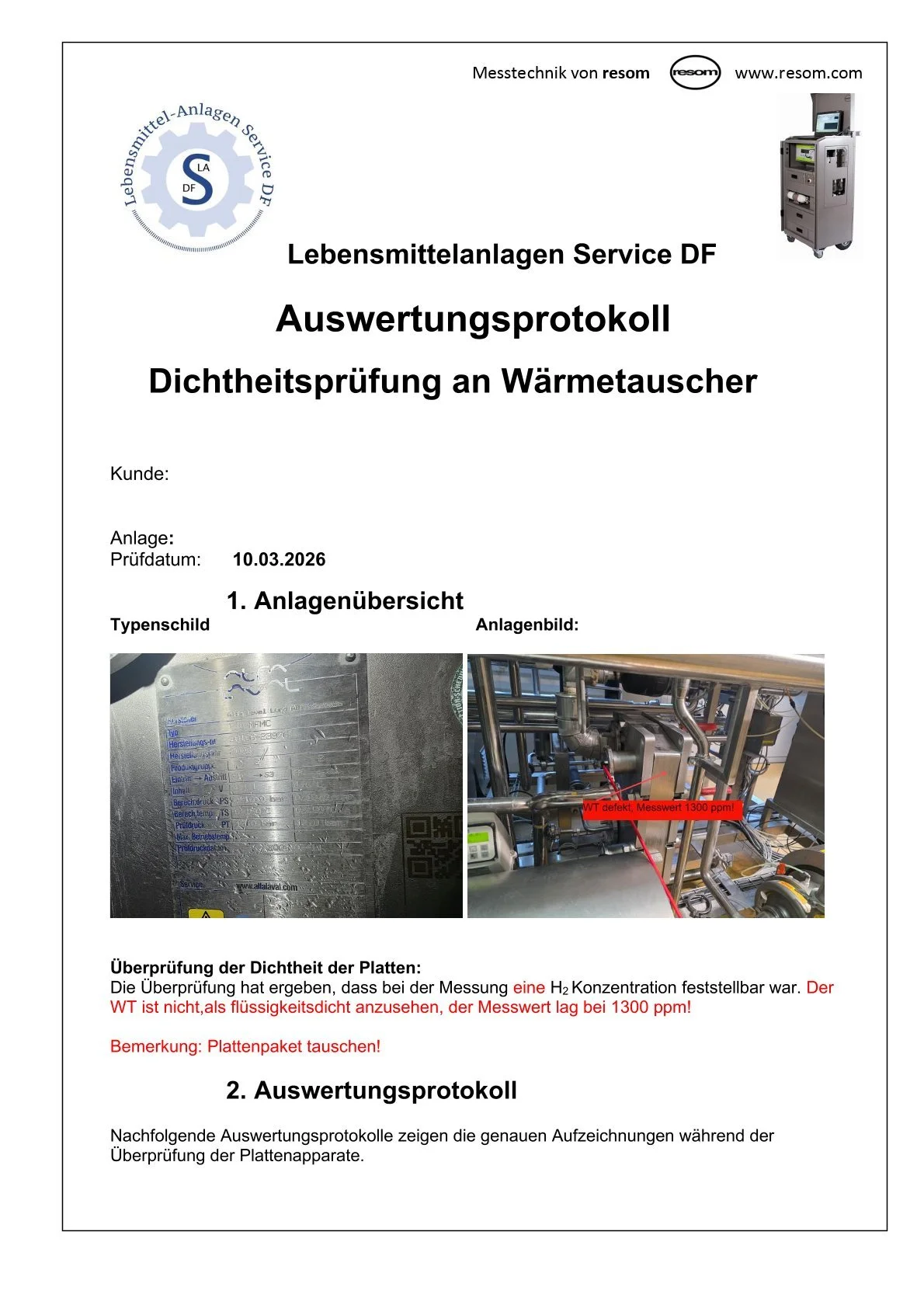 Mithilfe hochsensibler Messtechnik werden bereits minimale Gasübertritte detektiert. So lassen sich sowohl innere Leckagen zwischen den Medienkreisläufen als auch Undichtigkeiten an der äußeren Hülle des Apparates identifizieren. Die Wasserstoffprüfung bietet damit eine besonders sichere Grundlage für die Bewertung des technischen Zustands und trägt maßgeblich dazu bei, Risiken für Produktqualität und Lebensmittelsicherheit frühzeitig auszuschließen.