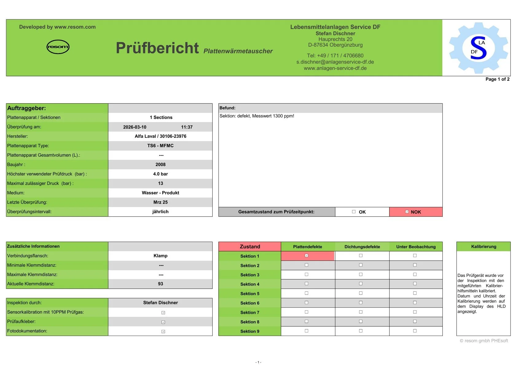 Beispielbericht für Wärmetauscher
